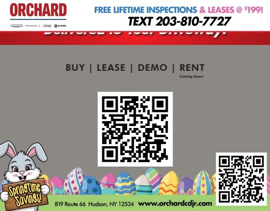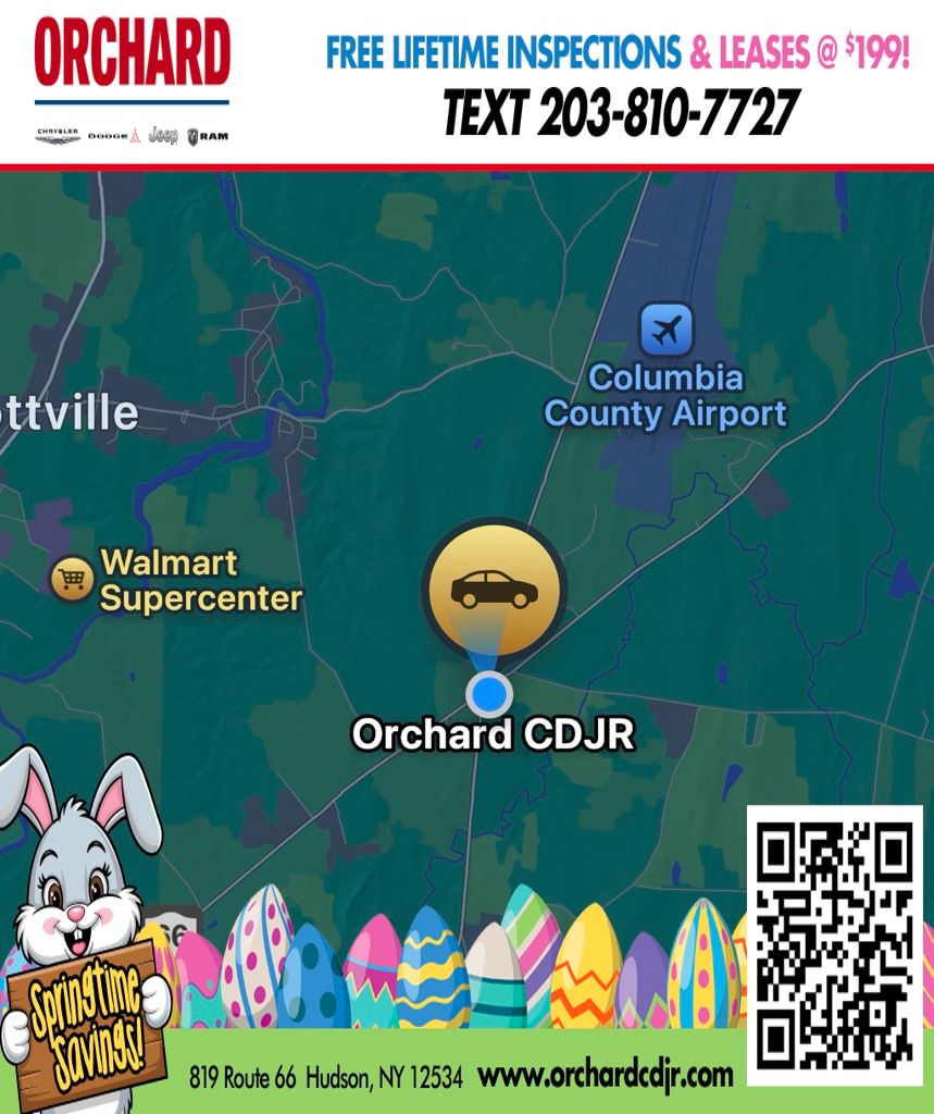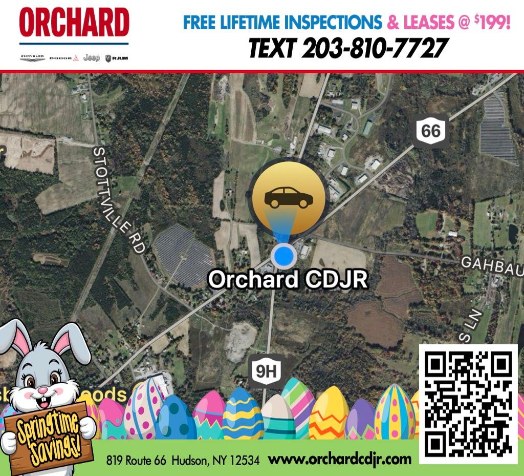 Why Buy from Orchard CDJR? At Orchard Chrysler Dodge Jeep Ram, we believe car buying should be as refreshing as a crisp fall harvest. As your hometown dealer, we're rooted in customer service and here to help you find the perfect vehicle to fit your lifestyle. Hand-Picked Deals â" Fair pricing and transparent offers you can trust. Financing for Every Basket â" From top-tier credit to fresh starts, we'll help you grow your options. Service That Bears Fruit â" Our certified team services all makes and models, keeping you on the road season after season. Local Roots, Wide Reach â" Proudly serving Columbia, Greene, Albany, Rensselaer, Dutchess, and Ulster Counties. At Orchard CDJR, you don't just pick a car â" you pick a dealership that puts people first.