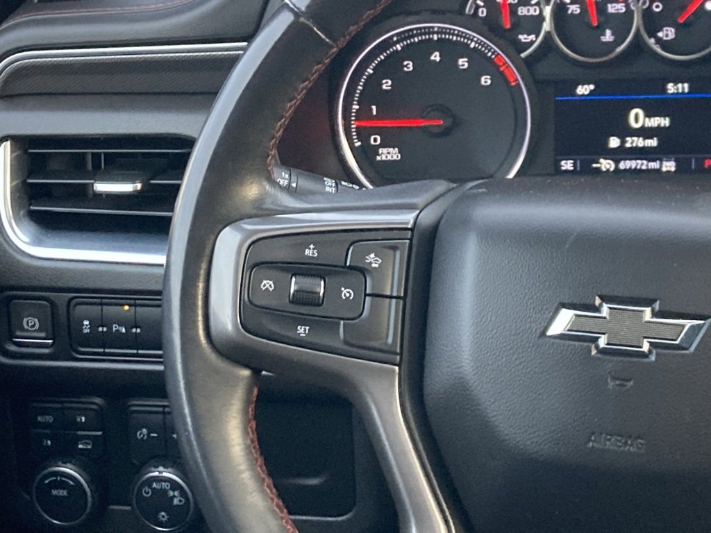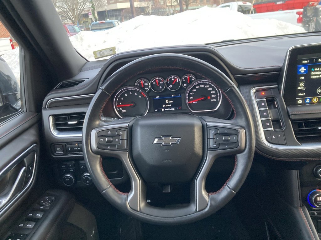 The 2021 Chevrolet Tahoe RST (Rally Sport Truck) is a fullsize SUV that combines spacious capability with a sporty, performanceinspired appearance. Positioned near the top of the Tahoe lineup, the RST trim emphasizes athletic styling and available upgrades while still offering the utility and comfort expected from a large SUV.Performance & CapabilityEngine: The Tahoe RST is typically powered by a 5.3liter V8 engine, delivering strong and smooth performance suited for highway driving, towing, and everyday use.Transmission: A 10speed automatic transmission provides smooth gear changes and helps optimize performance and efficiency.Drivetrain: Rearwheel drive is standard, with available fourwheel drive for improved traction in rain, snow, and light offroad conditions.Towing & Hauling: The Tahoe RST offers substantial towing capacity, making it capable of pulling trailers, boats, or campers when properly equipped.Interior & ComfortSeating Capacity: The SUV seats seven to eight passengers depending on seating configuration (secondrow bench or available captains chairs).Comfort Features: The cabin is designed for long drives and family usability, with supportive seats and modern conveniences that enhance comfort for both driver and passengers.Cabin Space: The Tahoes generous interior offers ample legroom and headroom in the first two rows, and a usable third row that accommodates adults on shorter trips or children on longer journeys.Cargo Space: Behind the third row there is significant cargo room, and the seats fold flat to provide expanded space for gear, luggage, or large items.Technology & ConnectivityInfotainment: A large touchscreen infotainment system places audio, navigation, and connectivity functions within easy reach.Connectivity: Builtin smartphone integration allows access to calls, messages, maps, and media. Multiple USB ports help keep devices charged.Driver Interface: A clear instrument cluster keeps essential information such as speed, fuel level, and driving modes easy to read.Safety & Driver AssistanceThe Tahoe RST includes a suite of standard safety and driverassist technologies designed to support confident driving and help protect occupants. These features typically include automatic emergency braking, blindspot monitoring, lanekeeping assist, adaptive cruise control, rearcrosstraffic alert, and a rearview camera system.Exterior DesignSportInspired Styling: The RST trim gives the Tahoe a bold, athletic look with dark exterior accents, unique wheels, and bodycolor trim that set it apart from more traditional or luxuryfocused trims.Lighting: LED headlights and taillights provide strong illumination and a modern appearance.Presence: With its large proportions, muscular stance, and distinctive trimspecific design elements, the Tahoe RST has a commanding road presence.SummaryThe 2021 Chevrolet Tahoe RST is a sportoriented fullsize SUV that offers:Powerful V8 performance with smooth automatic shiftingAvailable fourwheel drive for confident tractionSpacious seating for passengers and cargoModern technology and intuitive connectivityA comprehensive suite of safety and driverassist systemsBold, athletic exterior design unique to the RST trim