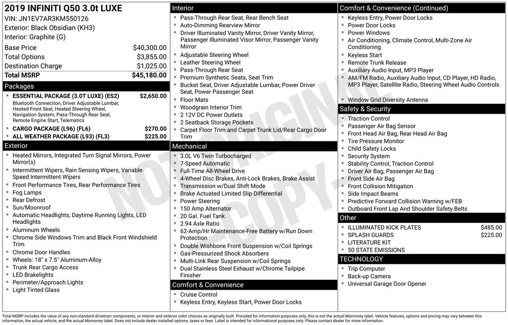 2019 INFINITI Q50 3.0t Luxe