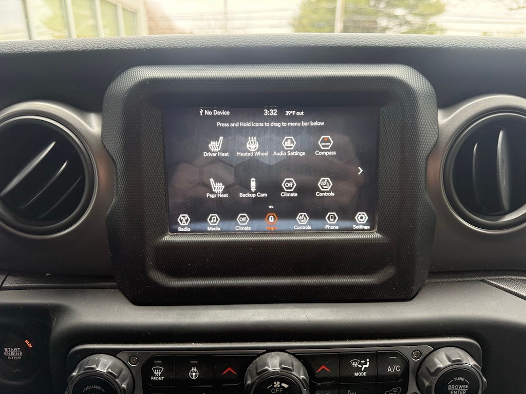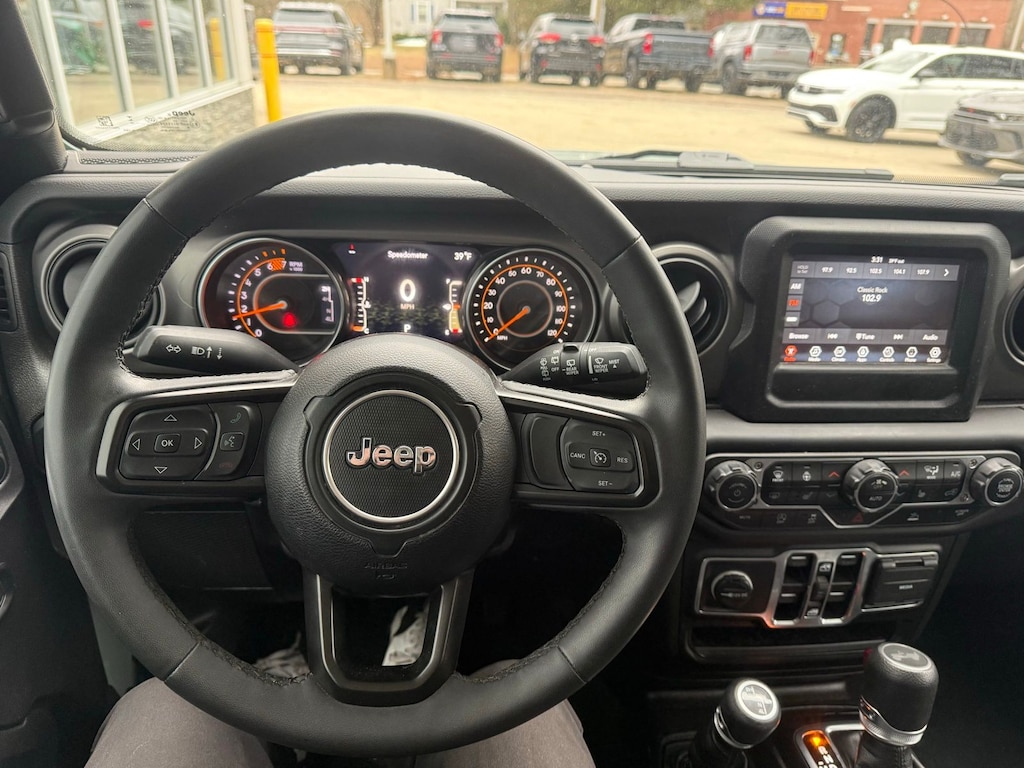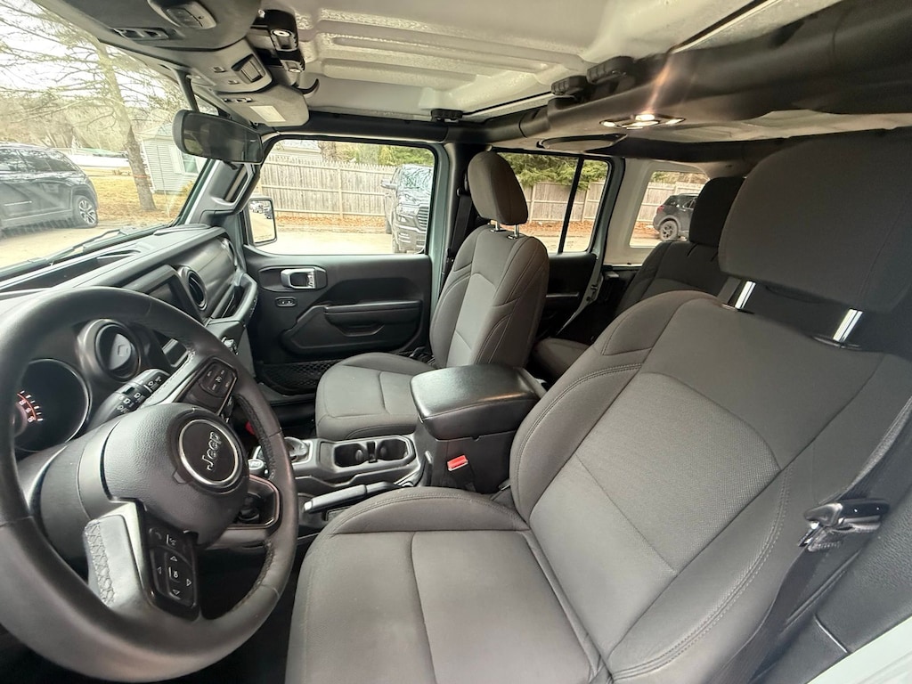 2-Door Passive Entry, Front Door Locks, 3.45 Overall Top Gear Ratio, 4-Wheel Disc Brakes, 8 Speakers, ABS brakes, Air Conditioning, Air Conditioning w/Auto Temperature Control, Air Filtering, AM/FM radio, Apple CarPlay, Apple CarPlay/Android Auto, Automatic Headlamps, Aux Battery, Black 3-Piece Hard Top, Brake assist, Cloth Low-Back Bucket Seats, Cluster 7.0" TFT Color Display, Cold Weather Group, Compass, Convenience Group, Deep Tint Sunscreen Windows, Delay-off headlights, Driver door bin, Driver vanity mirror, Dual front impact airbags, Dual front side impact airbags, Electronic Stability Control, Emergency communication system: SiriusXM Guardian, Engine Oil Cooler, Freedom Panel Storage Bag, Front 1-Touch Down Power Windows, Front anti-roll bar, Front Bucket Seats, Front Center Armrest w/Storage, Front fog lights, Front reading lights, Google Android Auto, GPS Antenna Input, Heated Front Seats, Heated Steering Wheel, Integrated Center Stack Radio, Integrated roll-over protection, Integrated Voice Command w/Bluetooth, Low tire pressure warning, MOPAR All-Weather Floor Mats, No Soft Top, Non-Lock Fuel Cap w/o Discriminator, Normal Duty Suspension, Occupant sensing airbag, Outside temperature display, ParkView Rear Back-Up Camera, Passenger door bin, Passenger vanity mirror, Power Heated Mirrors, Power steering, Premium Wrapped Steering Wheel, Quick Order Package 25S Sport S, Radio data system, Radio: Uconnect 4 w/7" Display, Rear anti-roll bar, Rear reading lights, Rear Window Defroster, Rear Window Wiper/Washer, Remote Keyless Entry, Security Alarm, Side Steps, SiriusXM Satellite Radio, Speed control, Speed Sensitive Power Locks, Split folding rear seat, Sport S, Steering wheel mounted audio controls, Stop-Start Dual Battery System, Sun Visors w/Illuminated Vanity Mirrors, Tachometer, Technology Group, Telescoping steering wheel, Tilt steering wheel, Traction control, Trip computer, Universal Garage Door Opener, USB Host Flip, Variably intermittent wipers, Wheels: 17" x 7.5 Tech Silver Aluminum, Wheels: 17" x 7.5" Black Steel Styled.
